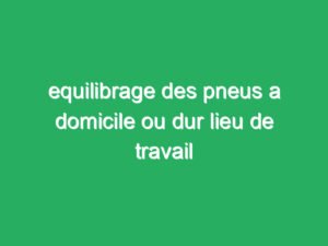equilibrage des pneus a domicile ou dur lieu de travail Travail à Domicile equilibrage des pneus a domicile ou dur lieu de travail David 05/07/2023 Équilibrage des pneus à domicile ou au lieu de travail L’équilibrage des pneus est une procédure essentielle...Lire Plus