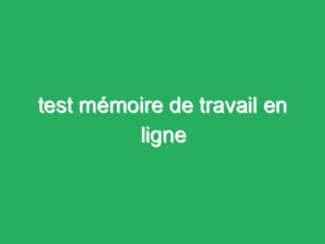 test mémoire de travail en ligne Travail en Ligne test mémoire de travail en ligne David 27/06/2023 Titre : Test de mémoire de travail en ligne : un outil précieux pour évaluer vos capacités...Lire Plus